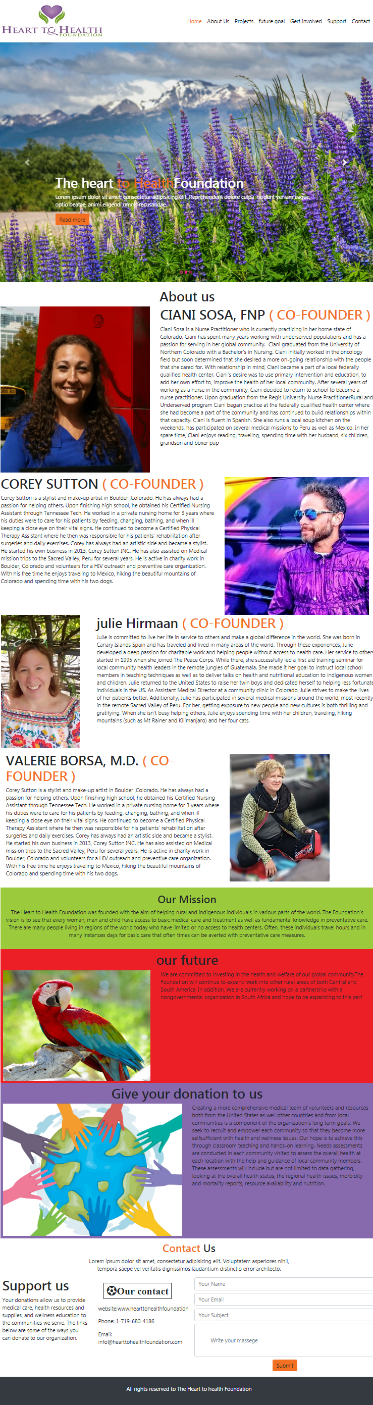 Tahsen rakib, a Bangladeshi designer, created this Elegant website on 7th August, 2019 for Mt Rose Health Center Palliative Care and Hospice, a business in United States. The website was designed for the project 'The Heart to Health Foundation'.