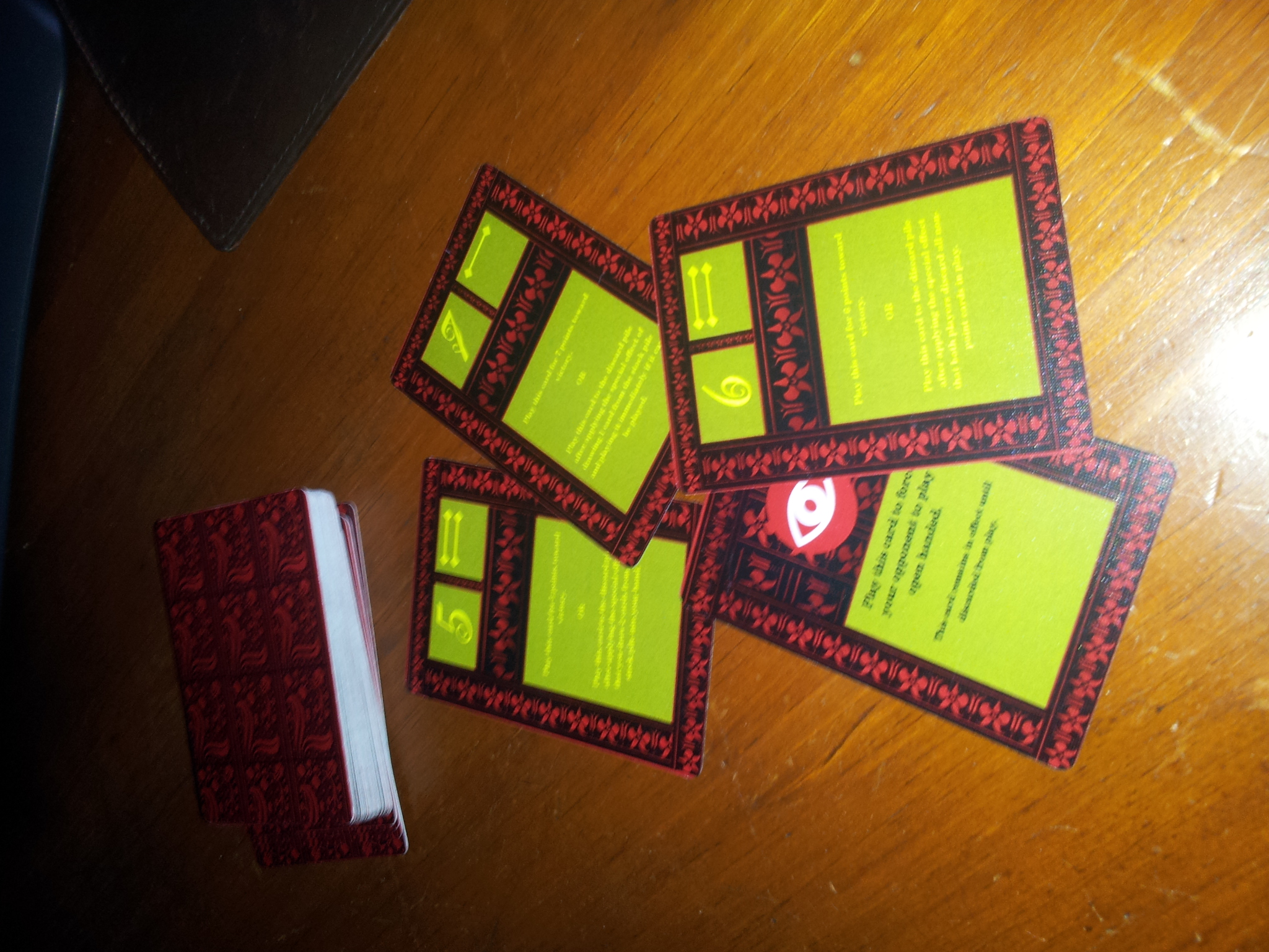 The attached PDF provides an example of the point card and non-point card layouts as well as a listing of the card types and the rules of the game.
