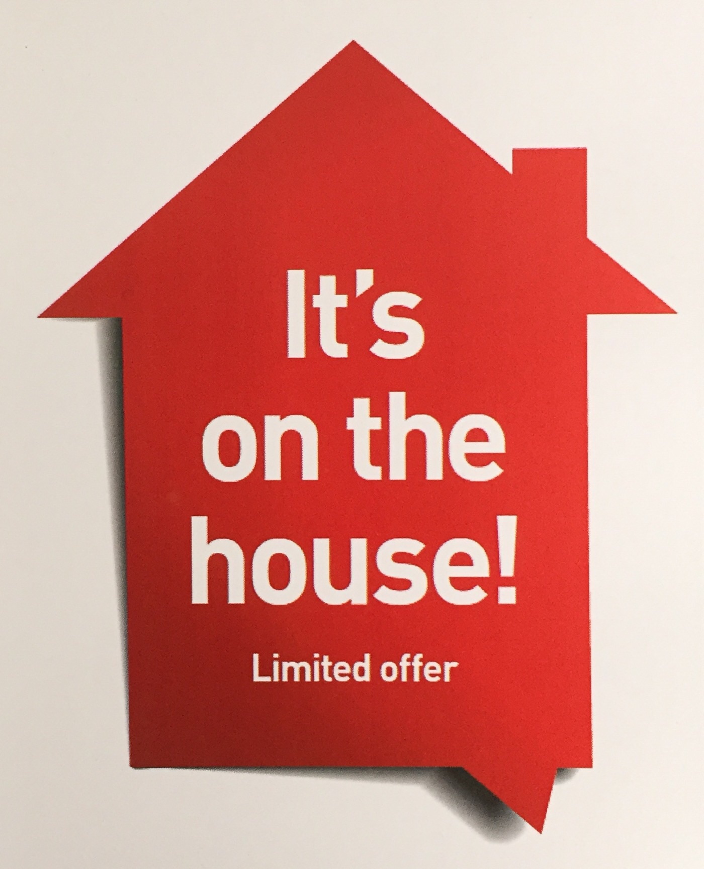 • A phrase under the house ie "It's on the house!"