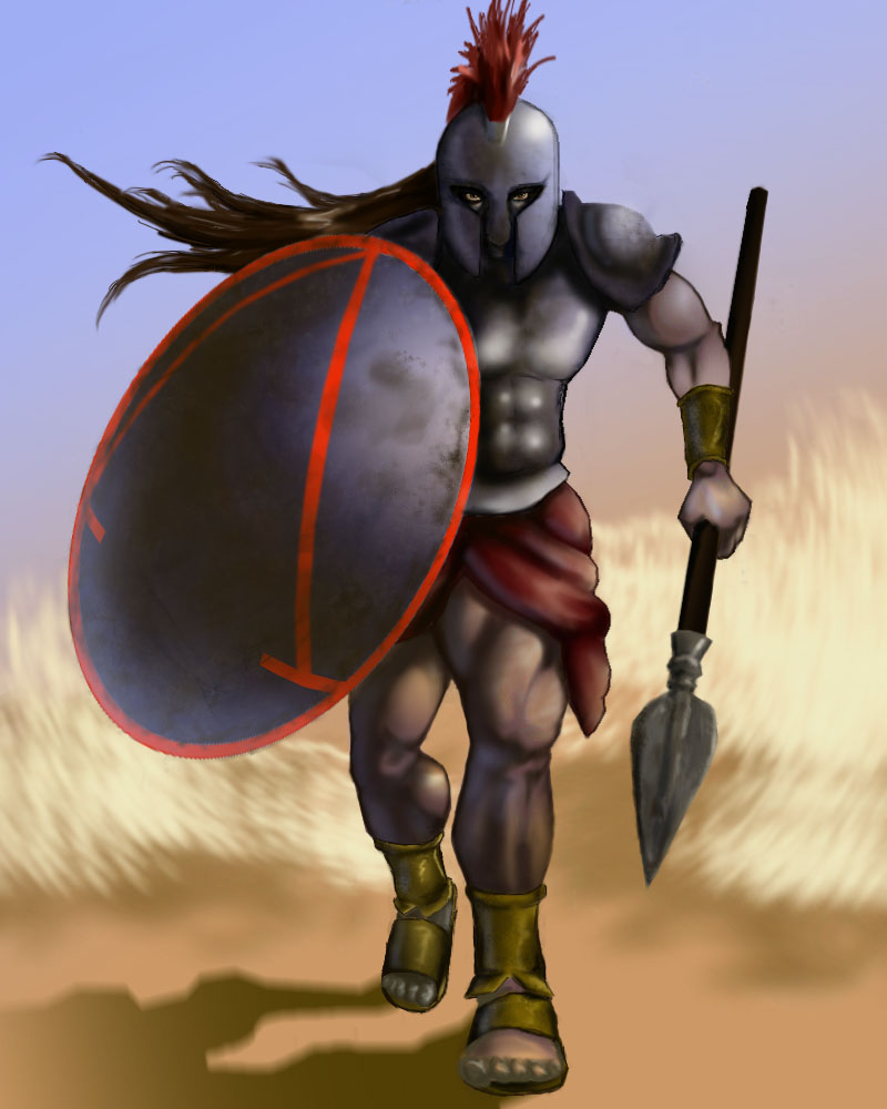 I am looking for a SPARTAN WARRIOR ATHLETE style running through mud, obstacle course design for a T-Shirt in beast mode. If you can add tires, kettle bells, a bar w/weights in the background would be awesome. See samples. Must have a spear and shield.