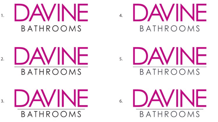 - If Davine can be in the purple colour chosen & bathrooms written in black font. At the moment my current logo is purple so would like to match the same