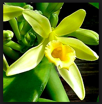 - Vanilla beans along with the orchid flower.