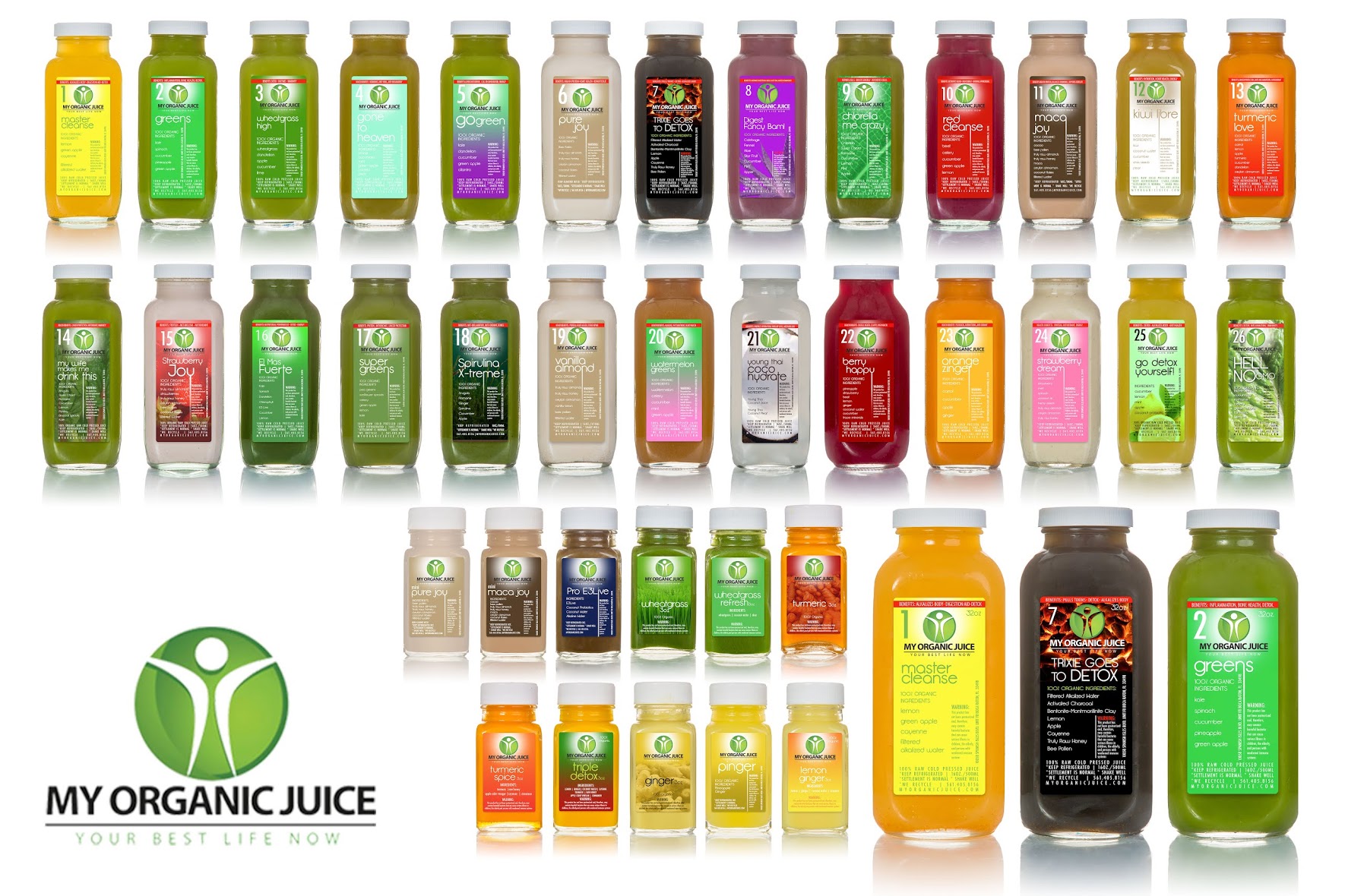 We have 27 different juices, 6 different soups, 11 shots. Our primary business is juice and bone broth soup which is very popular. I can provide the individual bottles as well. We are looking for A+ work. Very excited to see what you come up with.