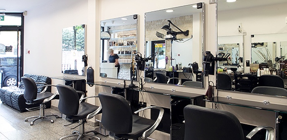 Our salon was est. in 1969. We are located in the centre of London. We are a bit old fashioned. Our regular are after 40 years old, but we wanted to pull up new younger customers. Colours of the salon are sand, grey and black.