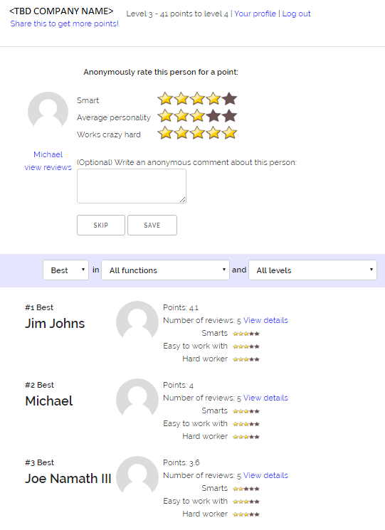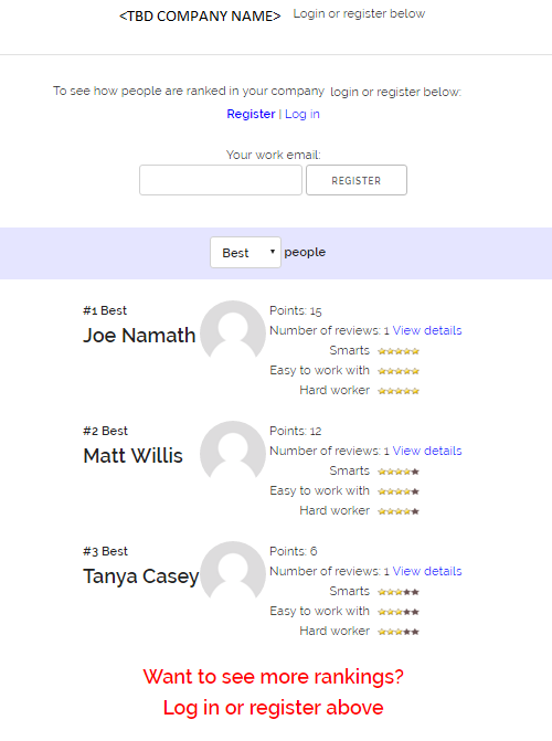 We're working on a corporate website for reviewing and ranking fellow employees. We need the website to look both fun and professional and it needs to be responsive - to it works on mobile and desktop.