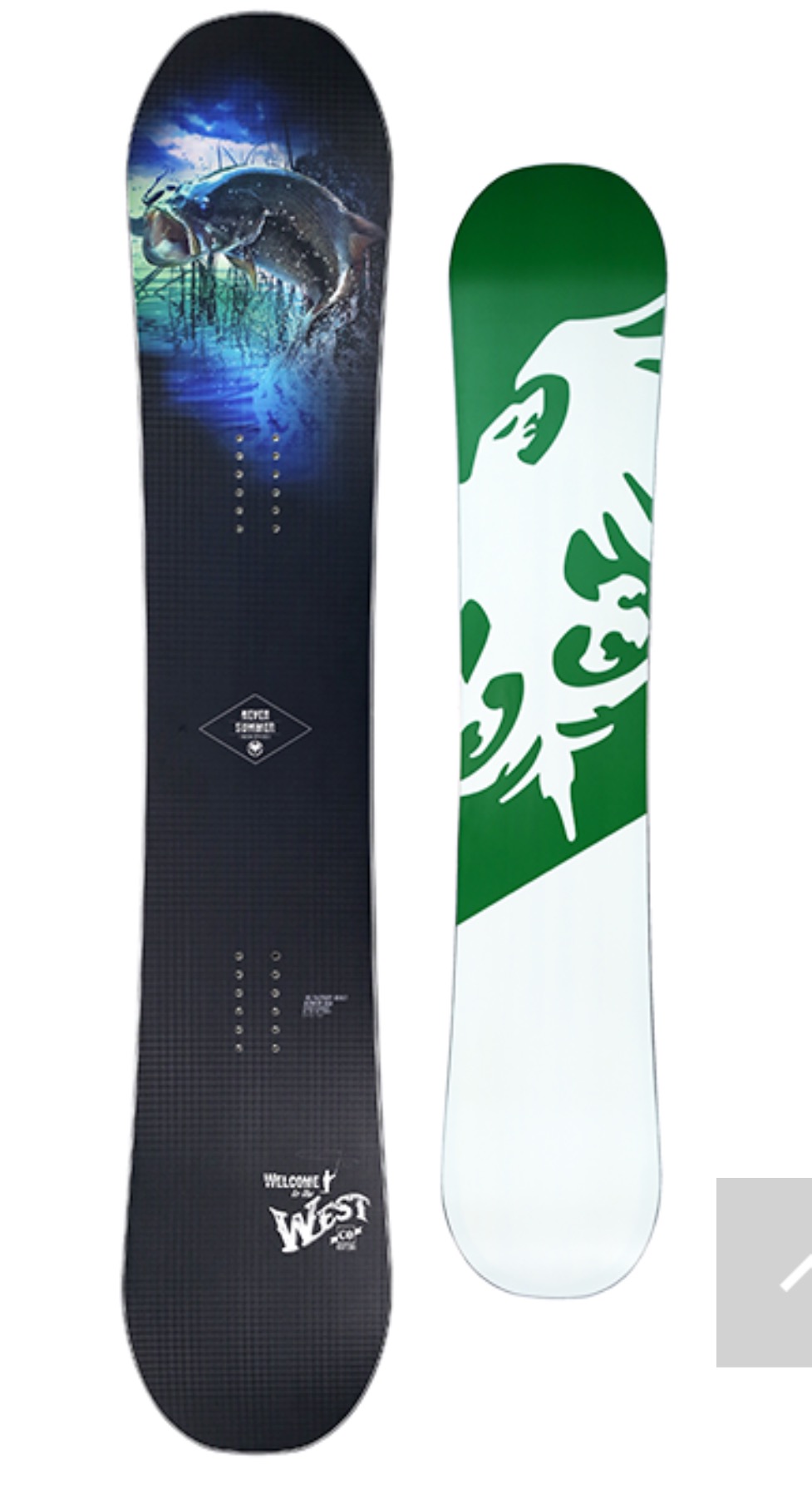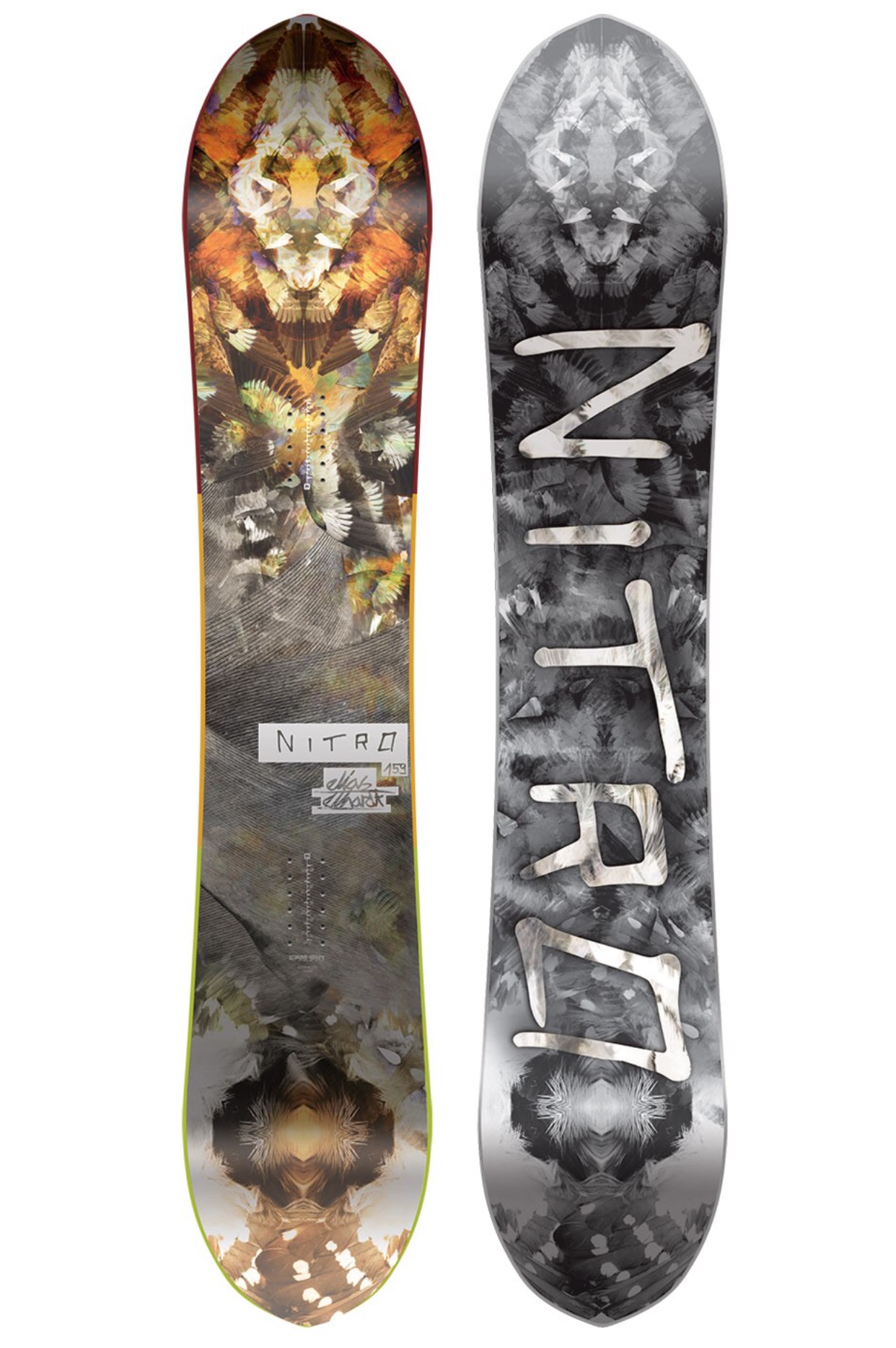Snowboard graphic design for a twin shape round nose snowboard
