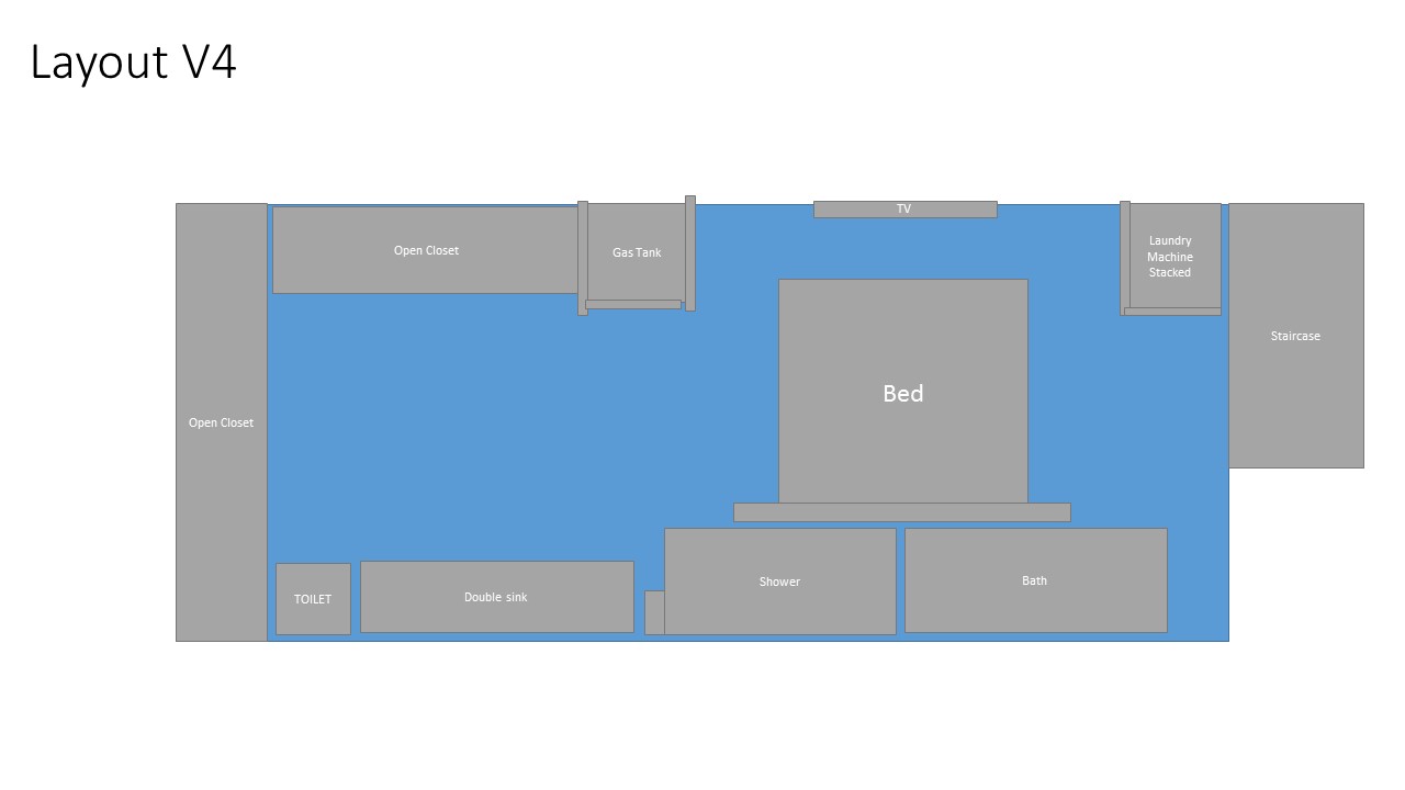 -- Section one should include an open-style bathroom, bedroom and closet.