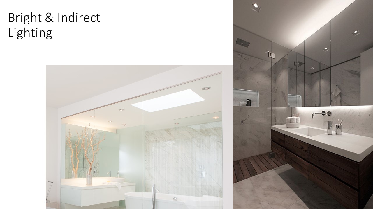 3) COLORS & AESTHETIC: We like the use of stone, wood, cement, mirrors and glass (like in the attached photos).