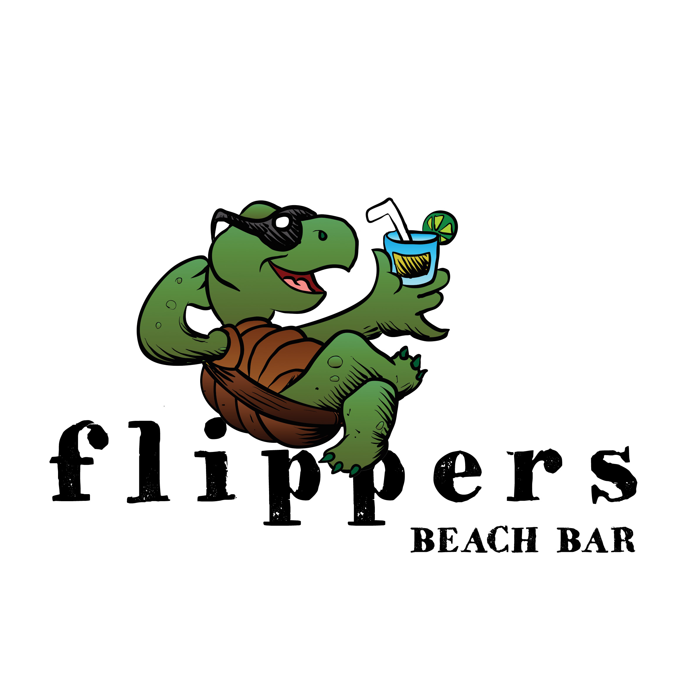 We are looking to create a new logo for a small beach bar at a high-end luxury resort on Great Abaco island in The Bahamas called The Abaco Club. The beach bar and restaurant sits on the ocean's edge overlooking Winding Bay where many green sea turtles live. The name FLIPPERS is in reference to the many friendly turtles and their flippers.