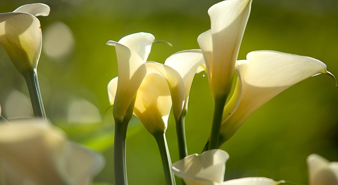 Create a logo for an independent midwife who has been out on his own. She would like a custom logo that resembles it. The idea is to highlight a flower named "ARUM" with a text: Eliane Tuck. The project must be elegant with shapes and solid colors and no drawings. The colors should be in green and white. Very fine and elegant. There must be a flower "ARUM" big and a smaller behind. Both flowers fade but the stems gently down.