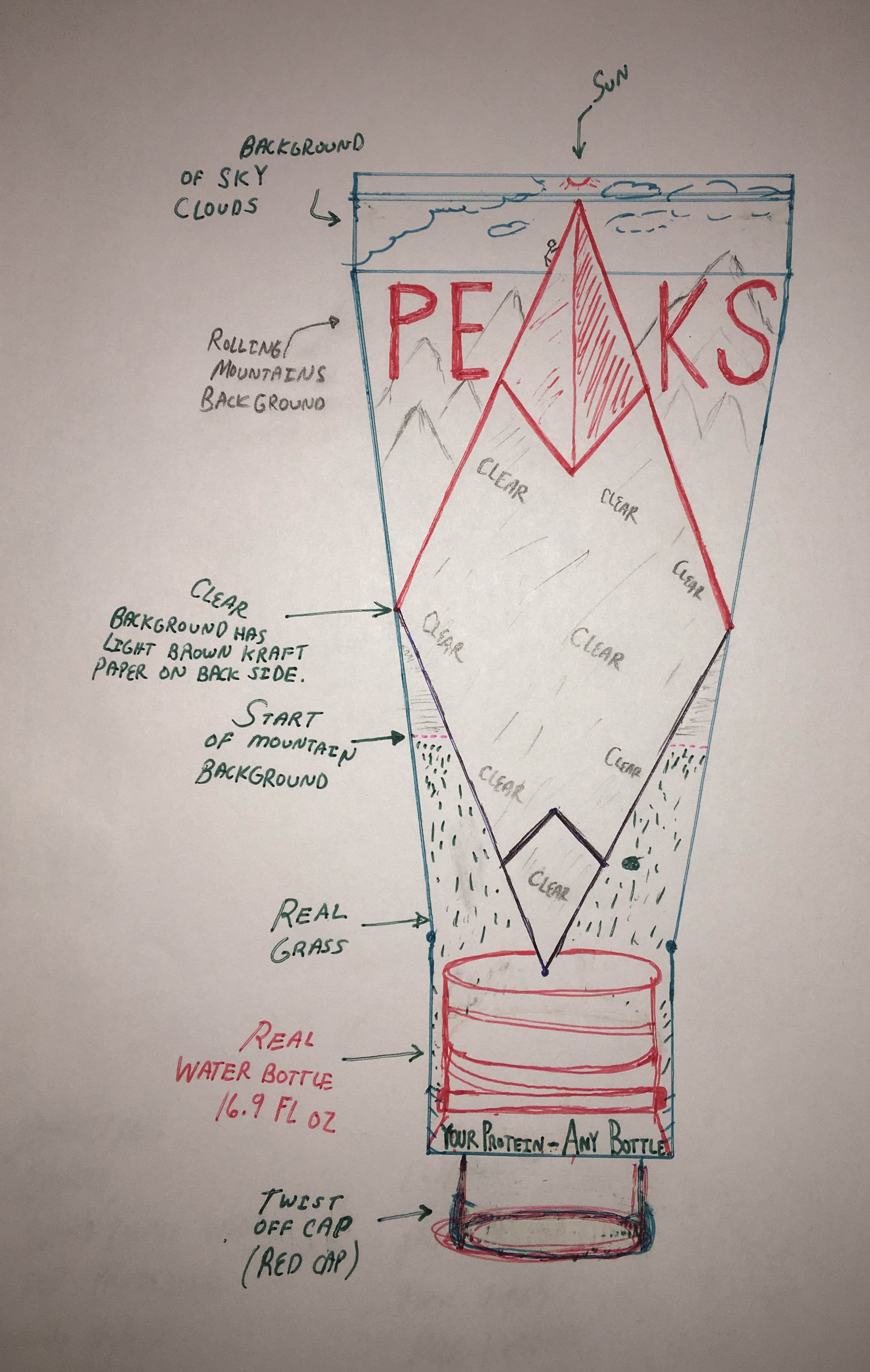 "Twist n' Lock Cap" and "Reusable" need to be added somewhere on fron and back