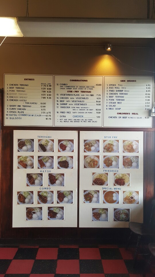 Teriyaki Asian to go menu pocket size. 10 inches x 4 inches folded in to 4 pages front and back @ 2.5 inches x 4 inches. full color