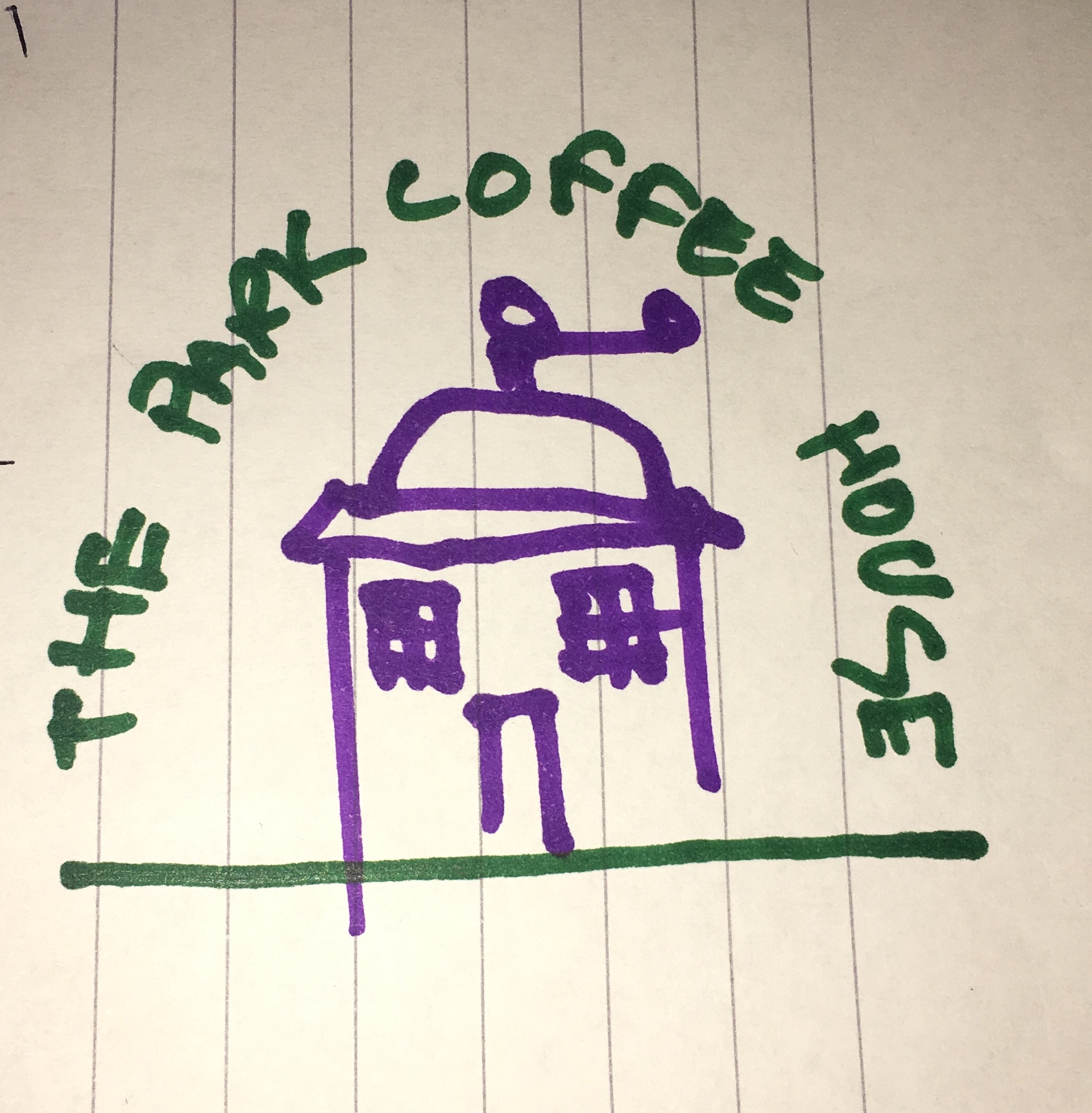 - Possibly more emphasis that our coffee house will be located in parks, maybe trees or kids swings etc to highlight that its in a park. We haven't put this on the sketch though as we are worried it may be too much. It's important for the logo to be neat and tidy.
