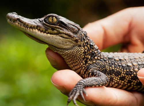 Crocodiles are all about stealth so you can hint at their presence without showing them.