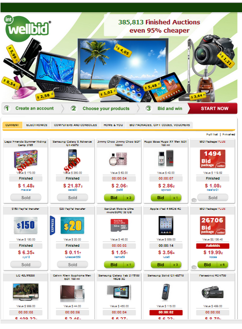 Penny auction website for high end market