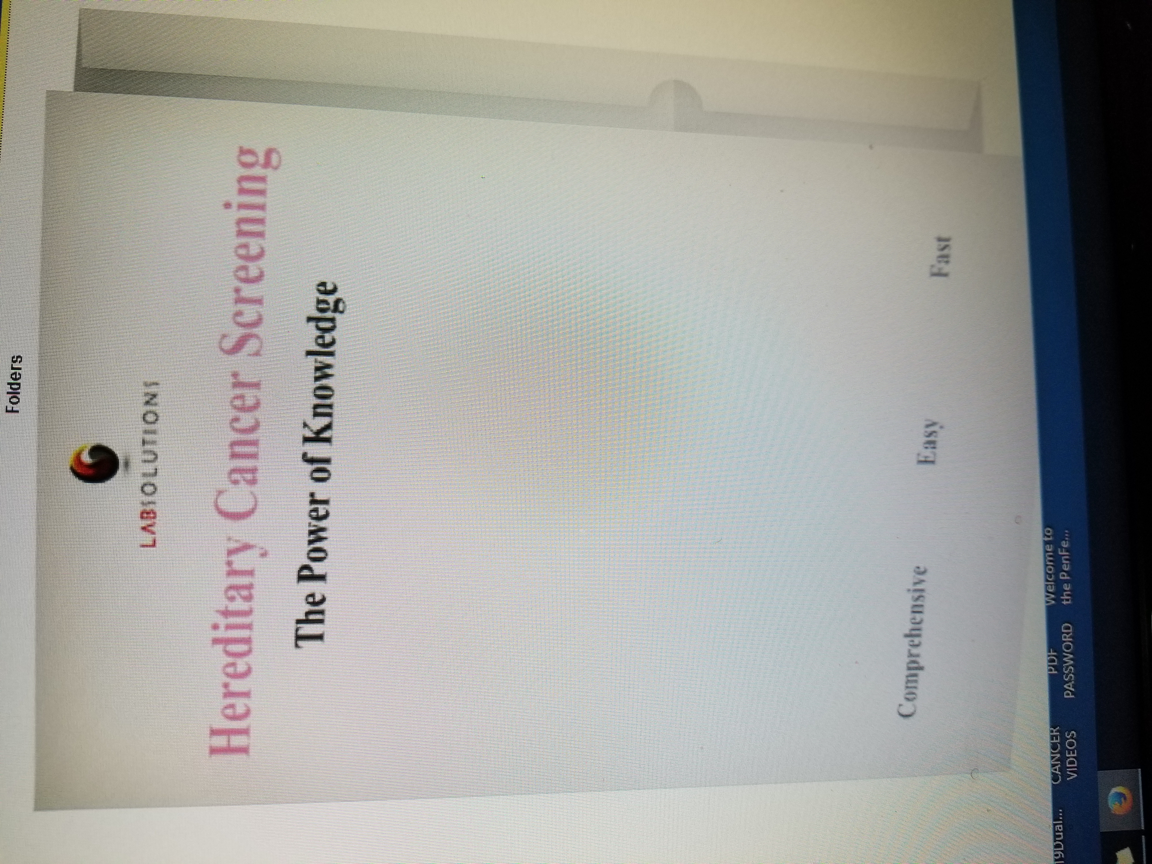 - a picture on the front of the folder under the words Hereditary Cancer Screening - Then under that put the words - The Power of Knowledge - then add the picture I labeled Great Picture in the attachments