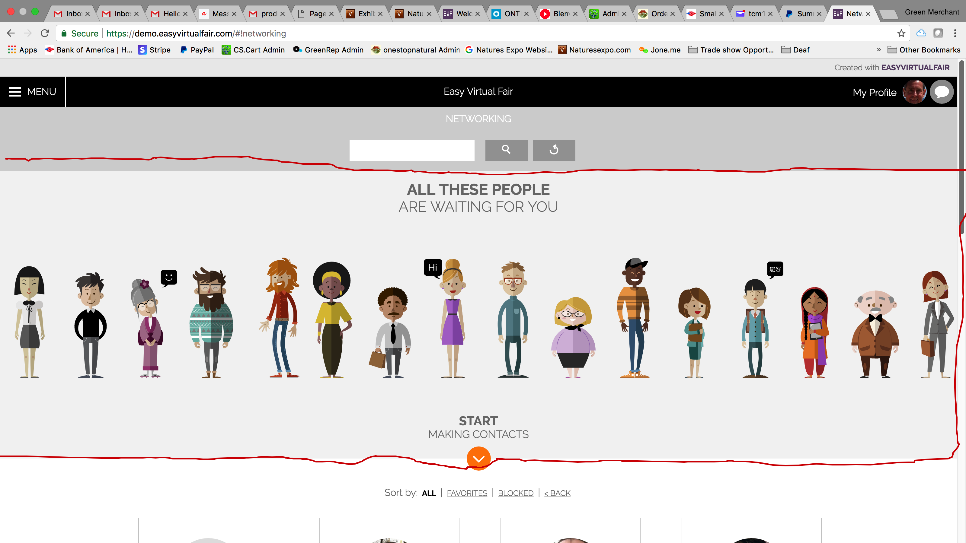 On the website click on enter and you see where the hall images will be going. Do not follow the branding or content they have, this is just an example. We want ours to look like trade show halls.
