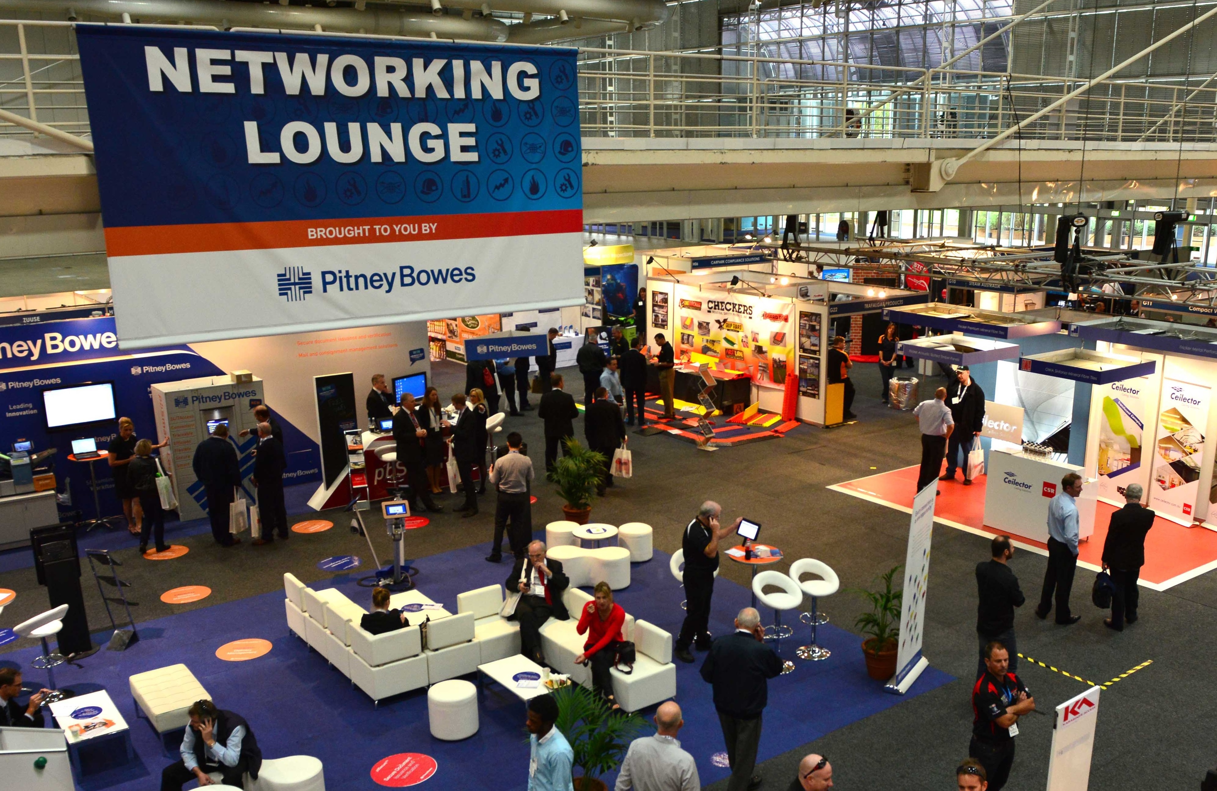 - Booths and company logos on some