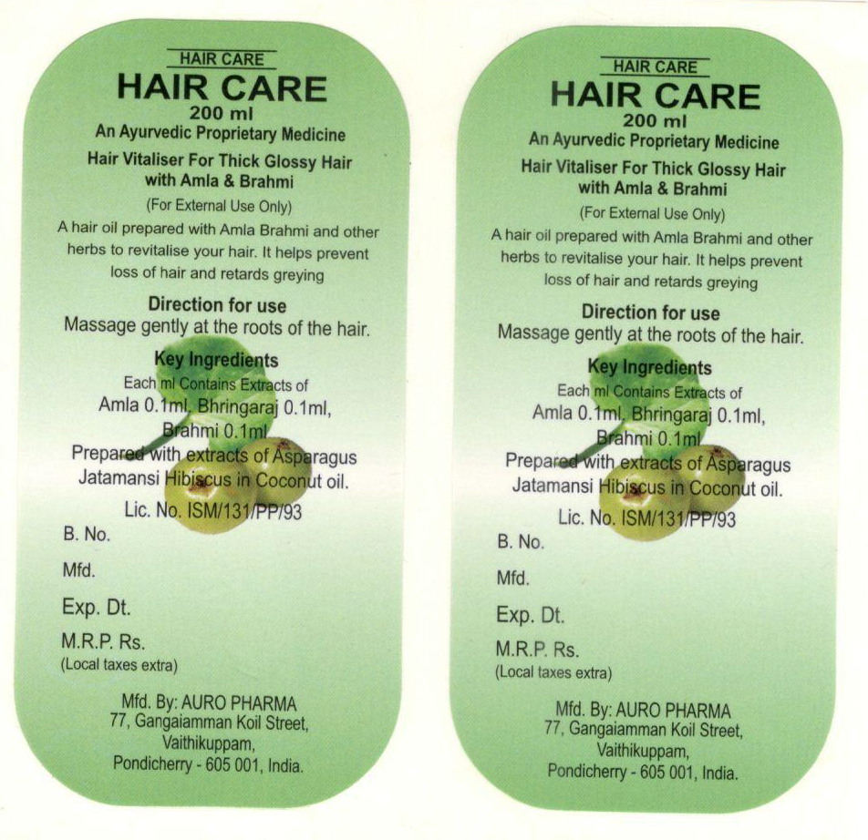 Label for a Hair oil product