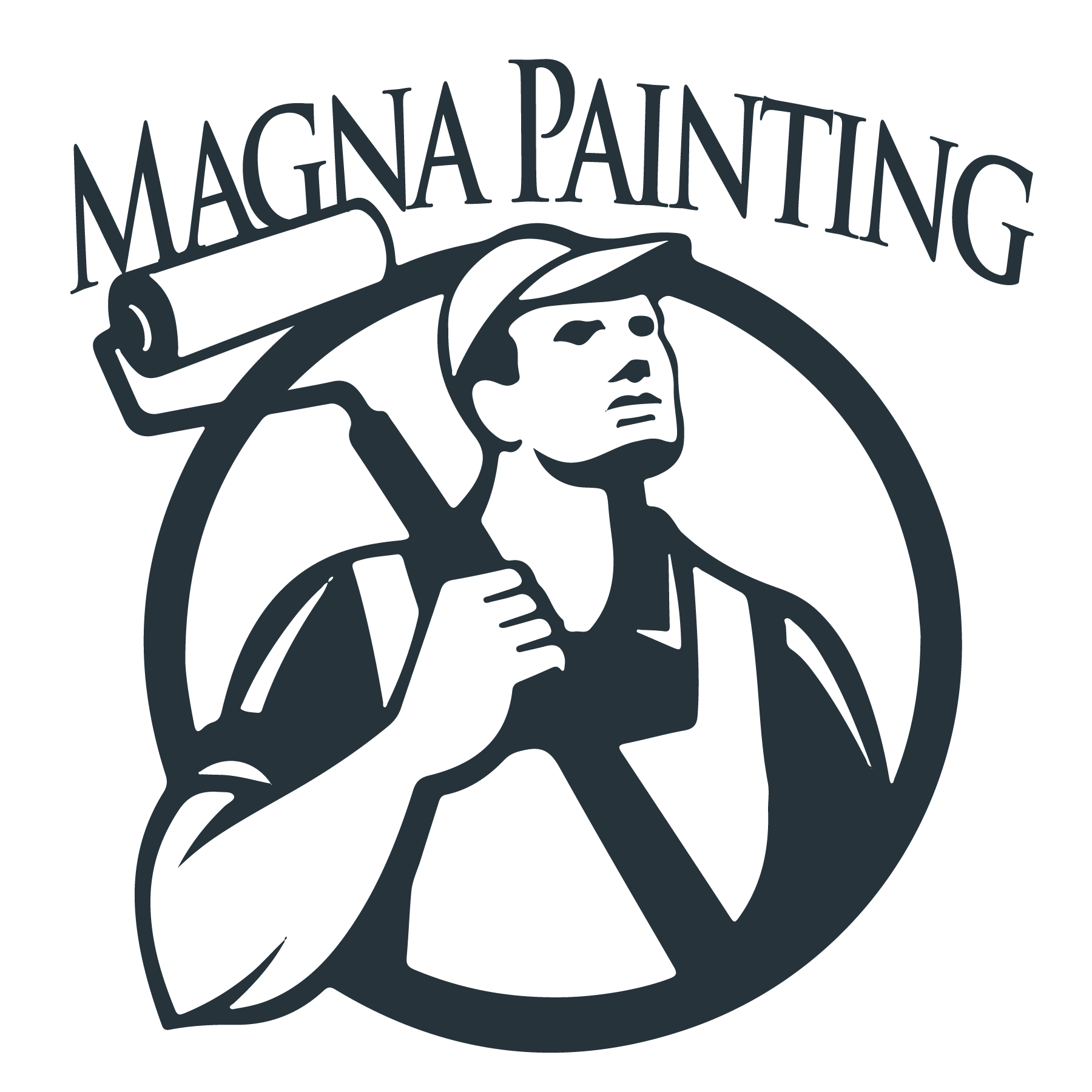 We are a painting company that offers painting services to homeowners. We need a logo design similar to our current one that I attached (the blue logo with guy holding the paint roller). Ours is not an original design. We need something original. Needs to be in the Navy Blue and white color scheme. We prefer circular logos. Logo to the left and "Magna Painting" to the right. Something bold and clean that will stand out on shirts and hats. We like the painter on there but feel free to send options or recommendations.