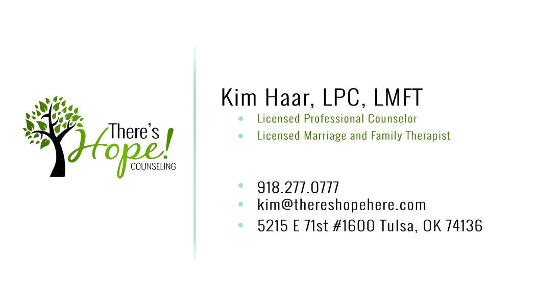 We need a postcard sized card that is TWO SIDED and shares our new location and services offered. (new location is 5215. E. 71st #1600 in Tulsa, OK 74136) Name of the therapy business is "There's Hope! Counseling". Services offered include individual, marriage, family and group counseling. My phone number to place on the card is (918) 277-0777 and someone can call to schedule a free 20 minute consultation at that number.