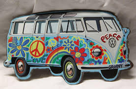 Look at the font of the 2nd image that says Peace & Rock for example... Has to be super fun, comical, whimsical, imaging 60's groovy stuff - peace, live, hippies, etc, yet still capture the beauty that awaits the guest in the Red Rocks. Make it fun - can include flying desert tortoises, wild burros/donkeys and/or bighorn sheep on van - all in cartoonish form perhaps.
