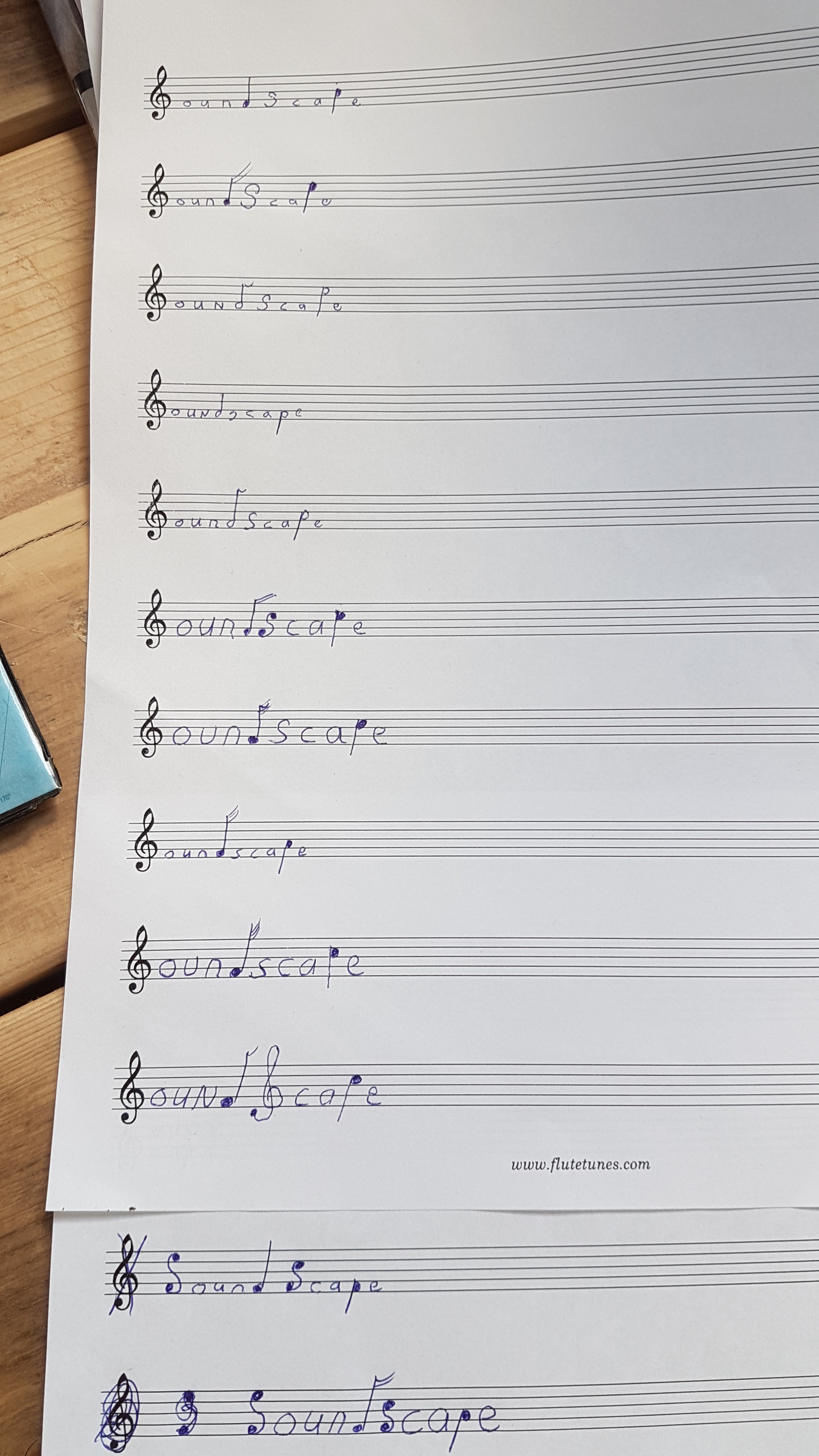 We had the idea to have a (perhaps somewhat transparent) musical notation bar as the basis for the logo. The G-clef (which is always at the start of a bar) could be slightly altered to make it appear more like an 'S', so it can be used as the first letter. The 'd' and 'p' can be altered to look like musical notes. Please see attached files to get an idea. I think the name SoundScape really works well with this idea, and it's perfect for our branche.