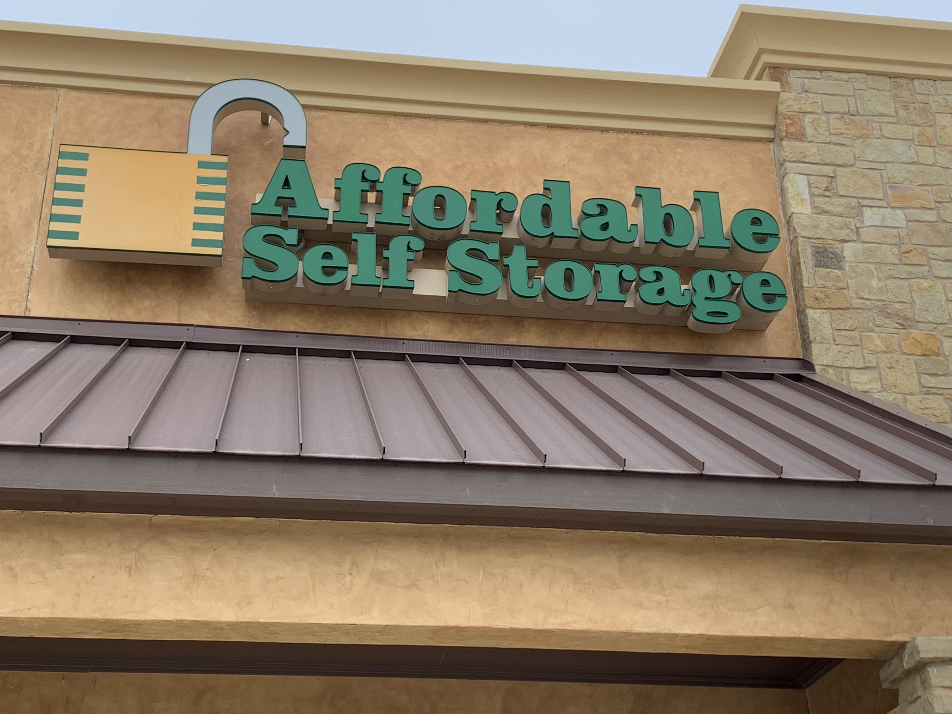 Pac N Stack Self Storage logo and phone number on front