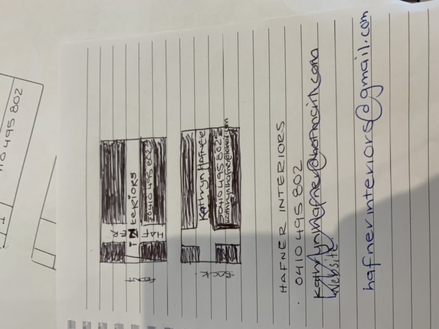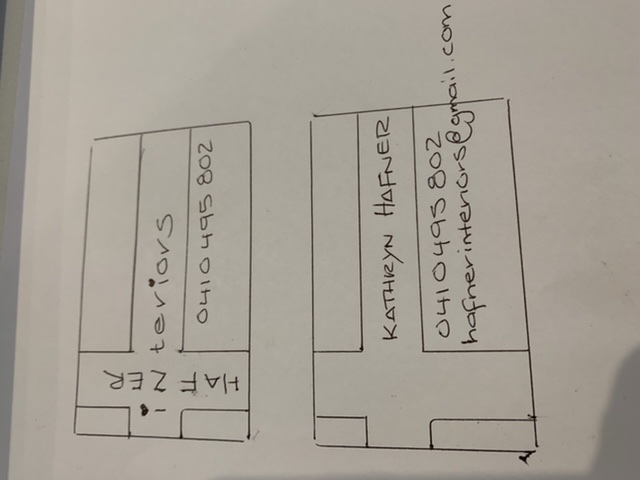 Hi, can you please make this design up for me. Hafner interiors text to front and Kathryn Hafner text to back in black. Small love hearts to be black. Mobile number to front text and back mobile number and email address text to be white. Open to your input 🙂 Thanks in advance! Kathryn