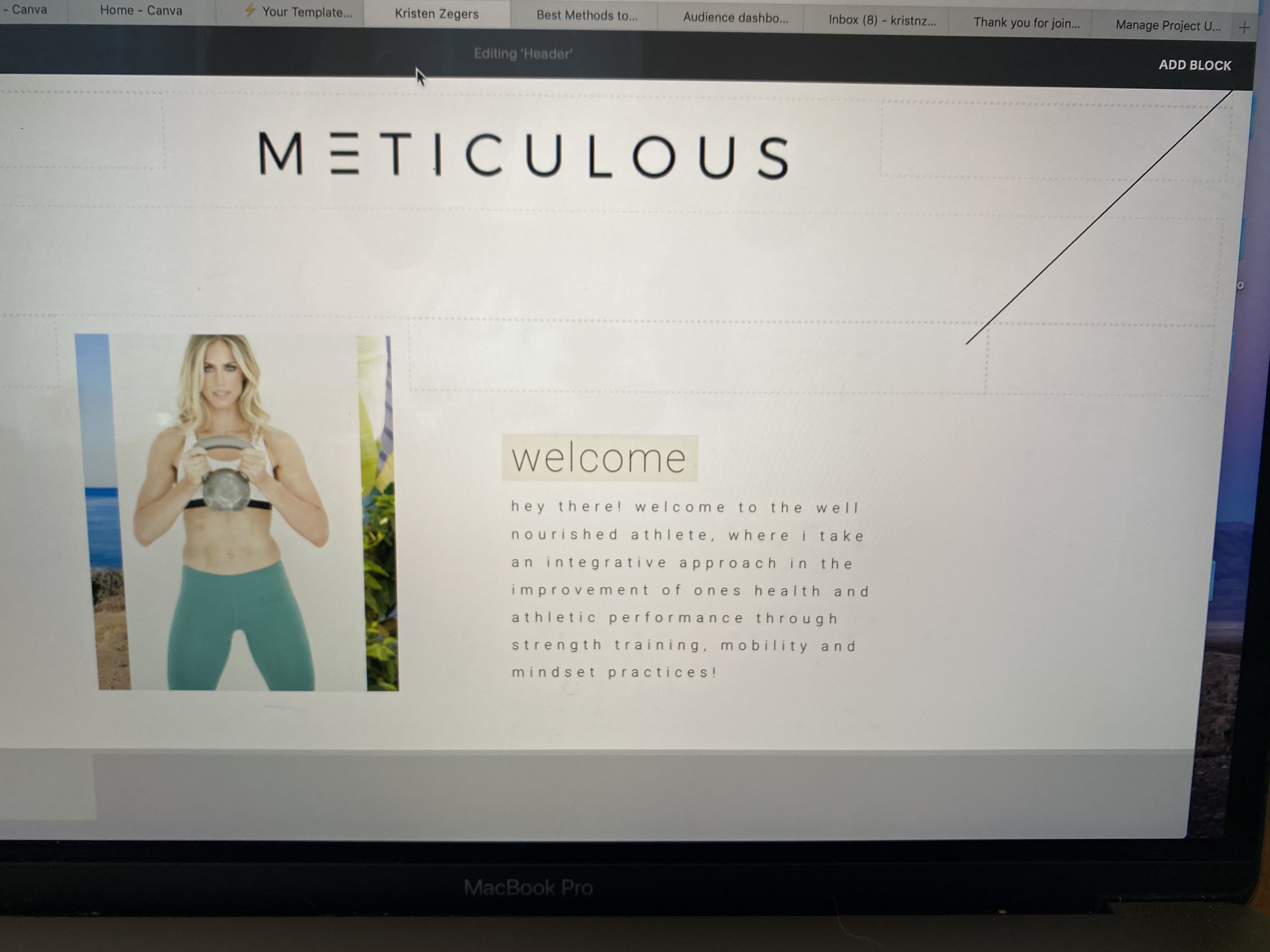 Kristen zegers or KZ for initials within a logo, will use the Kristen Zegers the well nourished athlete across the top of my website