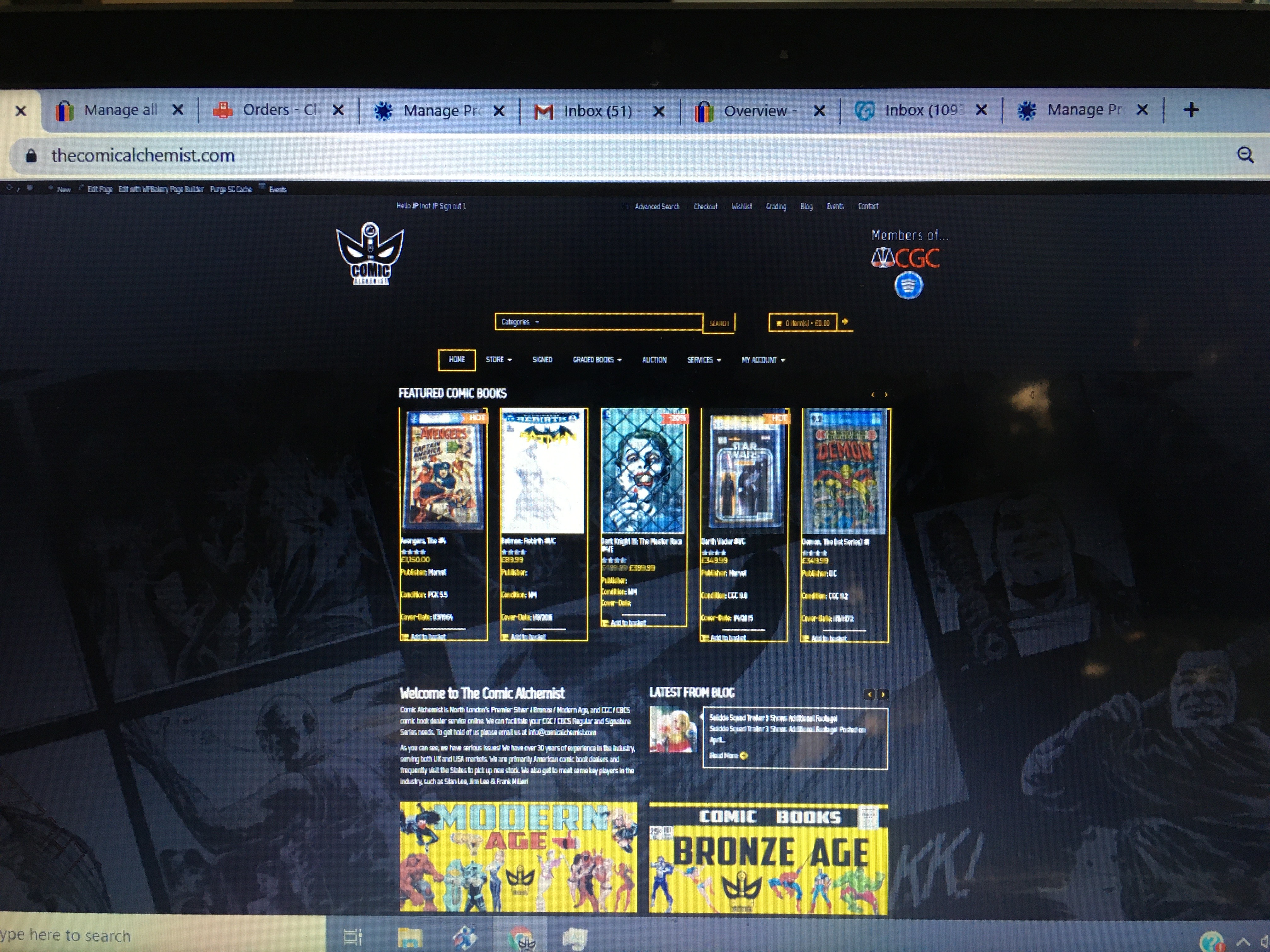 There is a lot of content on the site, but I have taken new images of the products, named the file extensions with all the important data, so it;s easy to match product pictures with the CSV. this takes hours so if we could find a way to feed the labelled product images files to speed up upload would really be a great thing. My original developer was not very experienced, so I was limited to what he could provide as far a solutions,for me but I need someone who understands my needs and can provide advice and advance professional solutions to the business needs. I currently have around 1700 products listed on Ebay, which is the most up to date inventory as far as graded books for sale on line is concerned, but I have 10k products. There is a company called hip comics that approached me to host my products on their site simply by pulling data from Ebay to populate listings on this third party site so I want to explore options of how I can implement feeds from my Comicbase, Ebay and GPA too.It has forms that need to be incorporated into the new design