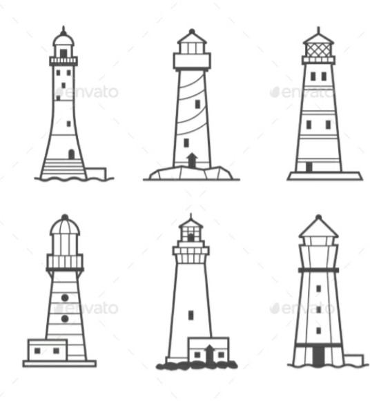lots of colour. Bold outlines. I really love the picture I sent with single lighthouse.