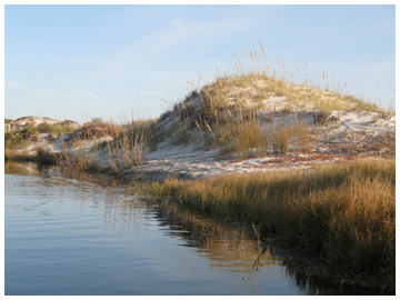 - elements of water to accent the rare dune lakes, dunes, and canopy trees; examples are attached below.