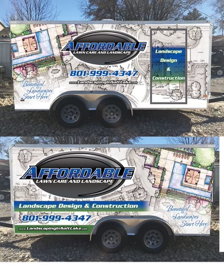 - I have uploaded an image of a trailer we currently have, it has our old logo, but we really like the landscape design background so maybe if we could use something similar.