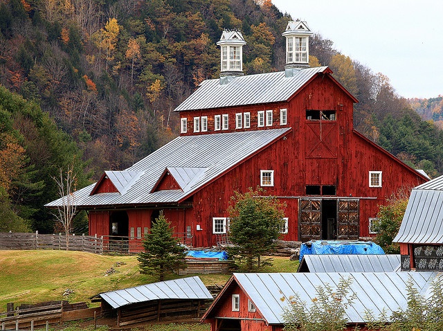 We need a logo. Our initial thought was to use the iconic view of the farm. There is a large barn with 3 silos. (Various views are in the image)