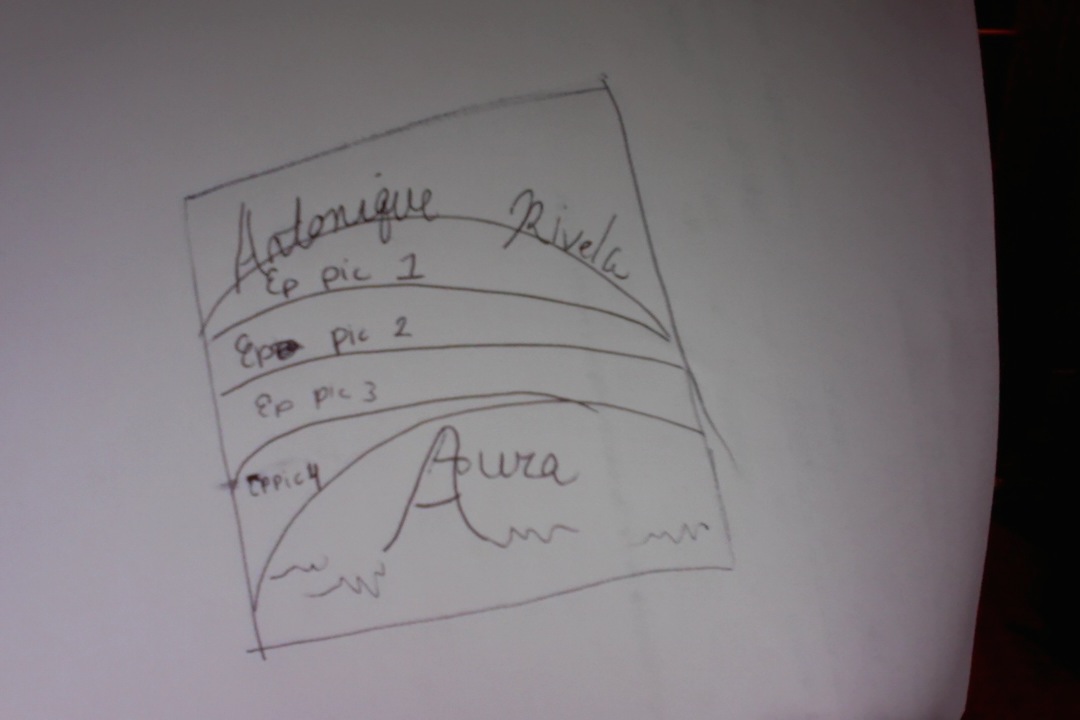 I am doing an album called Aura for all of my songs, I want it to be a faded rainbow design like the drawing filled with my pictures by the brush font in green, pink, gold and black. here are the pictures and drawing- with the rainbow.