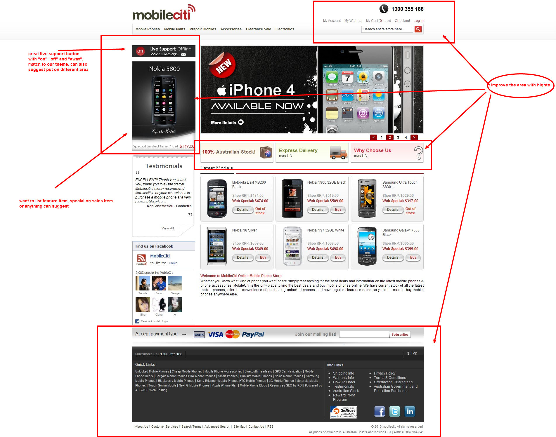 improvement change base on the live site: www.mobileciti.com.au