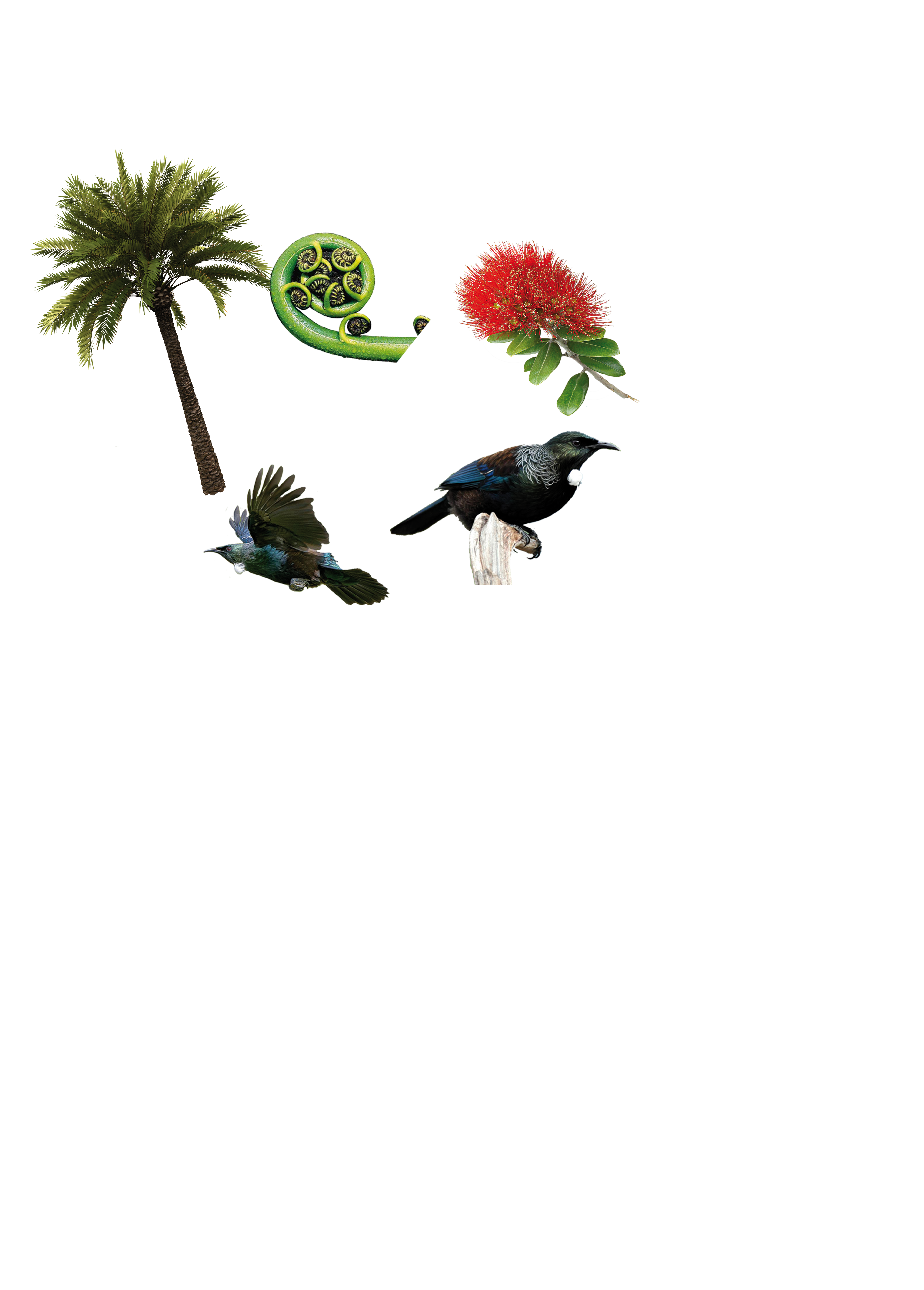 - Ferns and Pohutukawa flowers