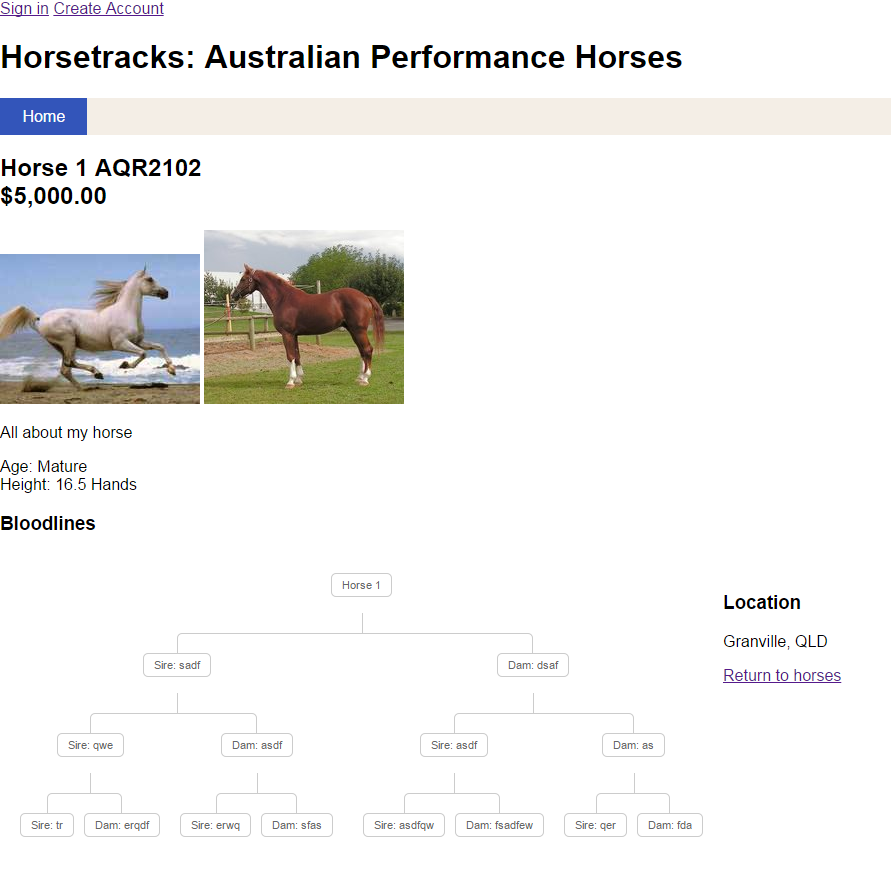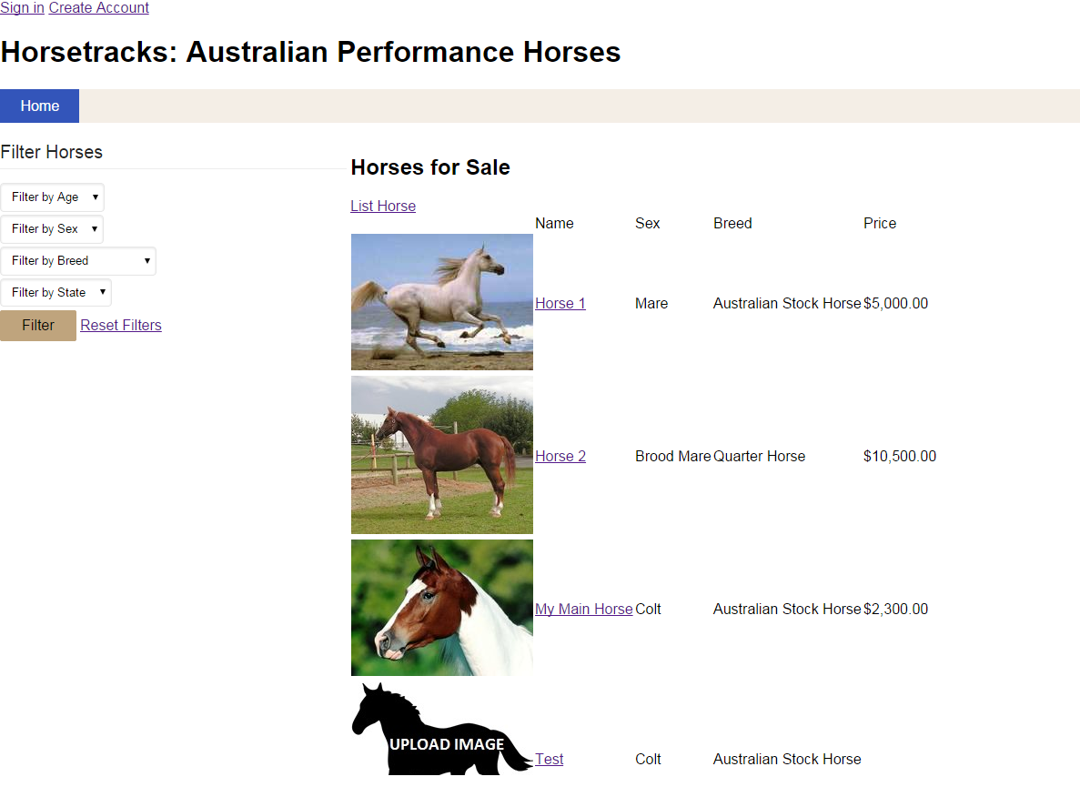 Screenshots of the basic program are attached for the Horses for Sale Page and the Horse Listing Page to give an idea of the elements required ONLY and should not be thought of as a design guideline.