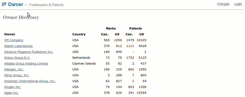 IP Owner is a trademark and patent database where the core element is the holder of the intellectual property. We offer company profile reports to financial analysts, law firms and companies owners of intellectual property.