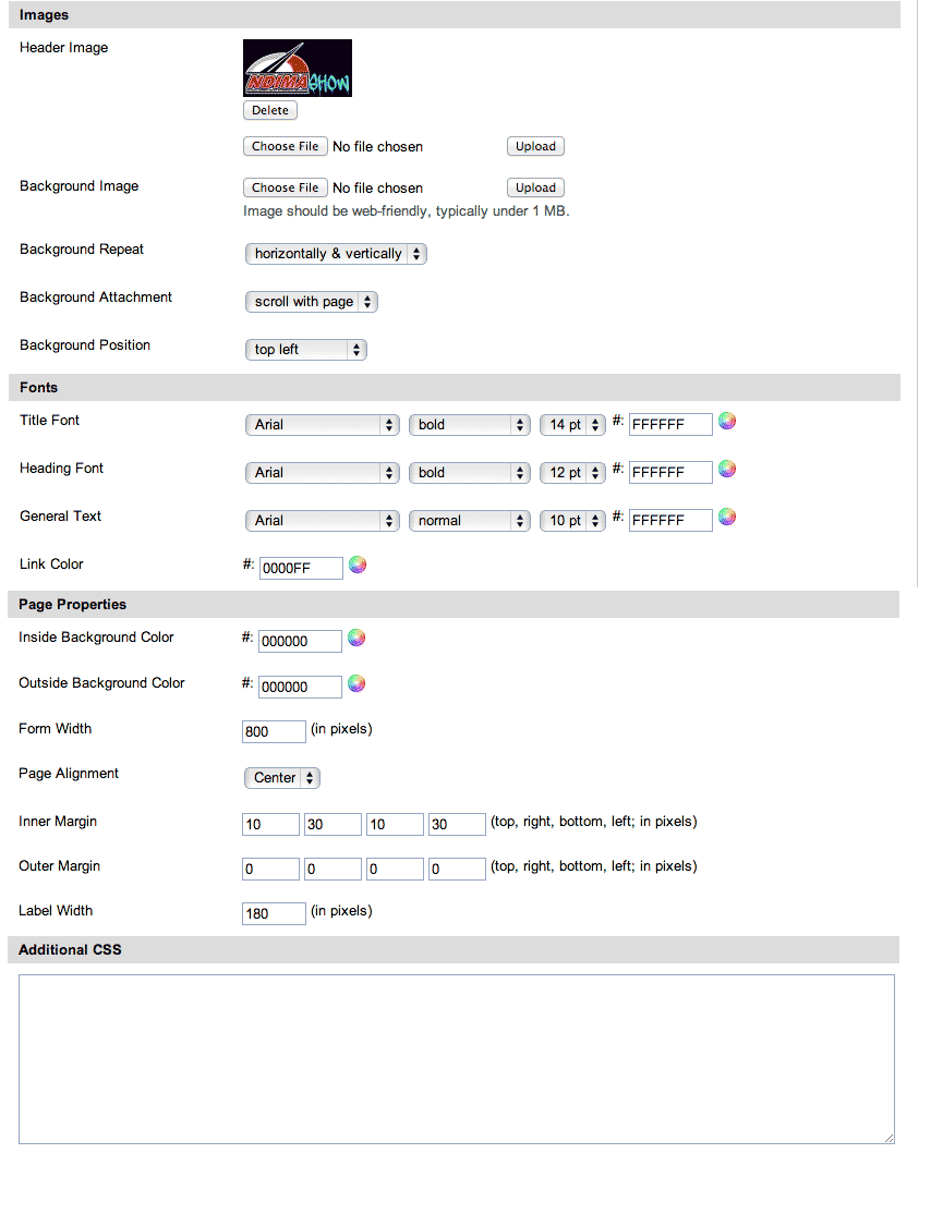 We need a graphical design for a single page that is used for an automotive event ticket registration. It's for a car show event and needs a simple header and background design. We use Ticketspice.com for ticket booking service, and within this service we are able to upload a custom header, background, and manipulate CSS and other SIMPLE variables. Specific variables listed below in the "Must Have" field.